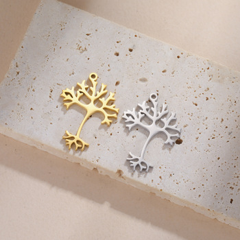 Colgante de árbol pequeño de moda minimalista, componentes decorativos hechos a mano de acero inoxidable, pendientes, collar, hallazgos de joyerÃa