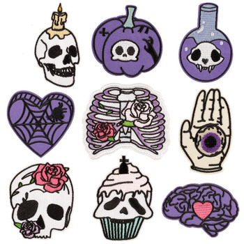 Adesivo Hot Melt ricamato in ferro su teschio viola rose toppa cuore per cappelli borse di Jeans decorazione di abiti da te ricamo Patch