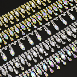 Strass di cristallo di lusso CZ catena di pizzo fai da te accessori per vestiti a goccia di vetro con nappa frangia artiglio con cornice diamantata