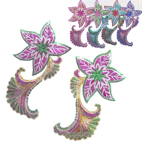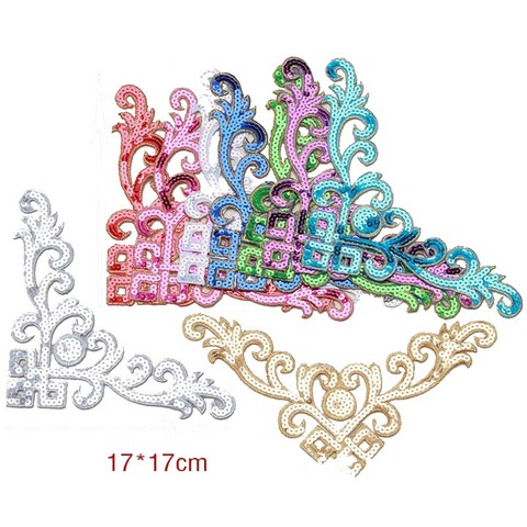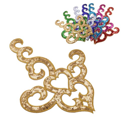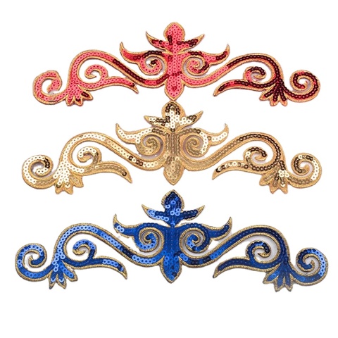 แฟชั่นตกแต่งด้วยเลื่อมแบบปักเลื่อมสีทองเงินสีแดงสีเขียวสีฟ้าแบบรีดติดเลื่อมปักเครื่องแต่งกายแบบทำมือชุดกระเป๋าแพทช์