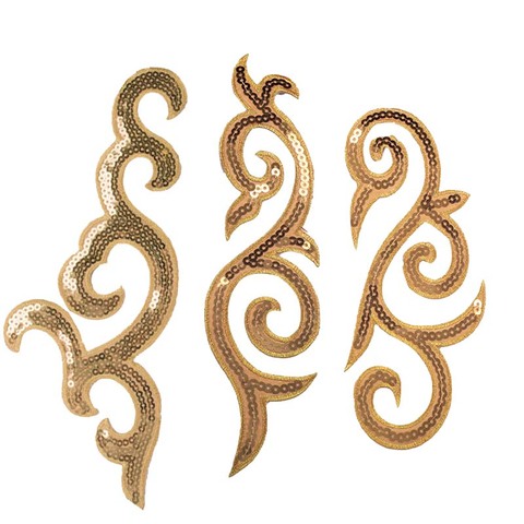 แผ่นผ้าปักลายลูกไม้สำหรับเย็บแบบทำมือมีผ้าประดับด้วยผ้าแบบกี่เพ้าประดับด้วยผ้าสีทองแผ่นปะติดแบบกลวง